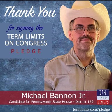 Michael Believes that Term Limits should be Introduced across the board, and that there needs to be a Pay reduction for our elected officials. He believes that it is Public Service- not a career. The whole idea was to "leave your farm to serve your neighbors, and when finished pass the torch and return!"